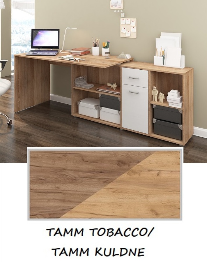 NB! Kirjutuslaua pilt on illustratiivne – õiged värvid on pildi all. Korpus ja lauaplaat on värviga: tamm tobacco, uksed on värviga: tamm kuldne.