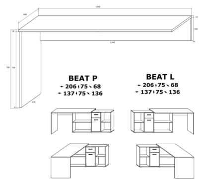 Kirjutuslauda on võimalik paigutada L kujuliselt või sirgena.
