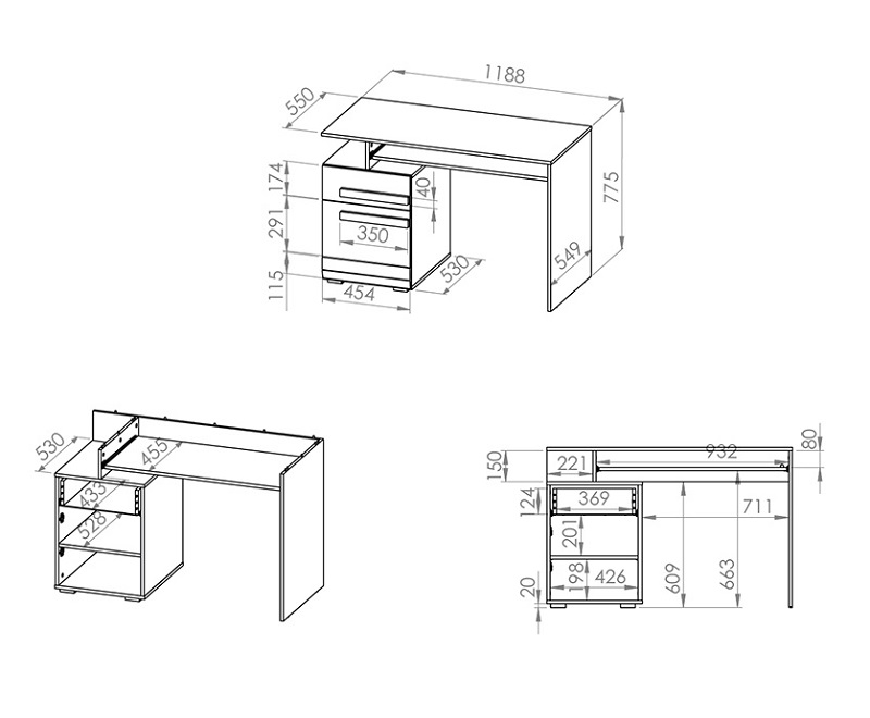 Materjal: kvaliteetne lamineeritud mööbliplaat, servad ABS, käepidemed MDF, jalad plastikust.