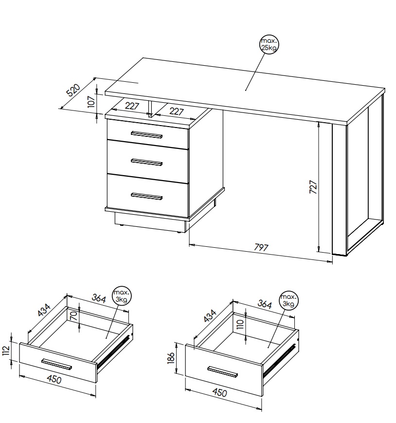 Kirjutuslaud Lamelo La8 (135/56/74,9)