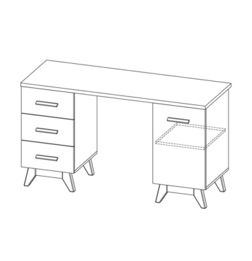 Kirjutuslaual on 1 uks ja 3 sahtlit.