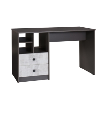 Kirjutuslaual on 2 sahtlit ja avatud riiul.