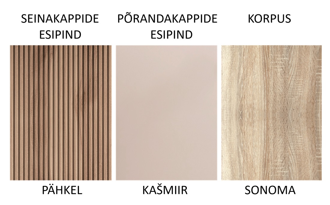 Ülemiste kappide esipindade värv: pähkel.