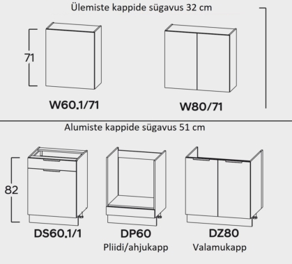 Alumiste kappide kõrgus on 72 cm + jalad 10 cm.