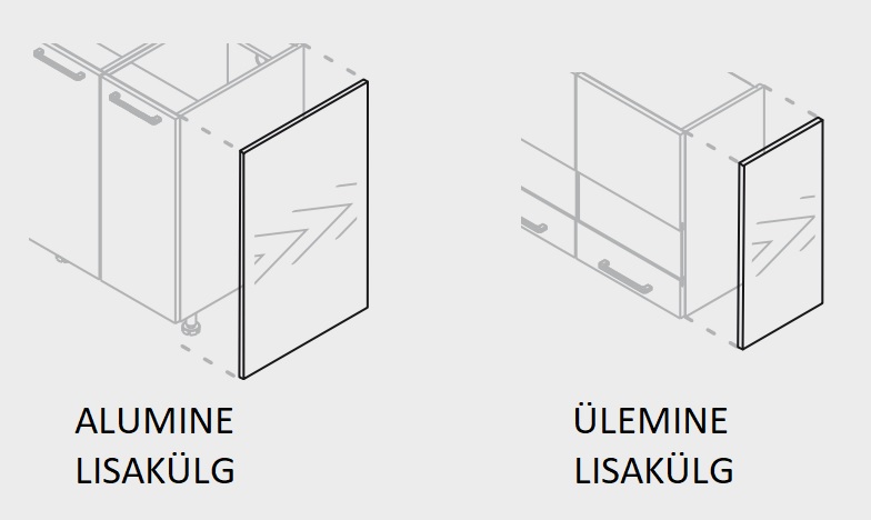 Lisavalikuna võimalik juurde osta lisakülg nii ülemise-kui alumise kapirea lõpetuseks.