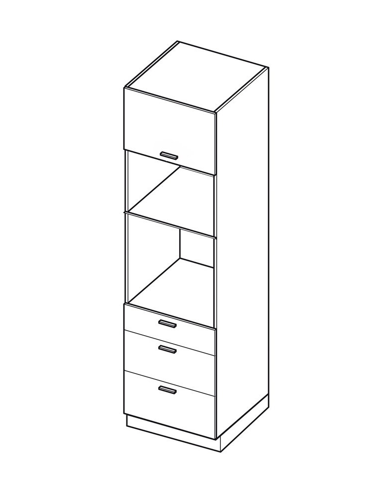 Kapil on 1 uks, 3 sahtlit ning kohad integreeritava ahju (595*595 mm) ja mikrolaineahju (max 388 mm) jaoks.