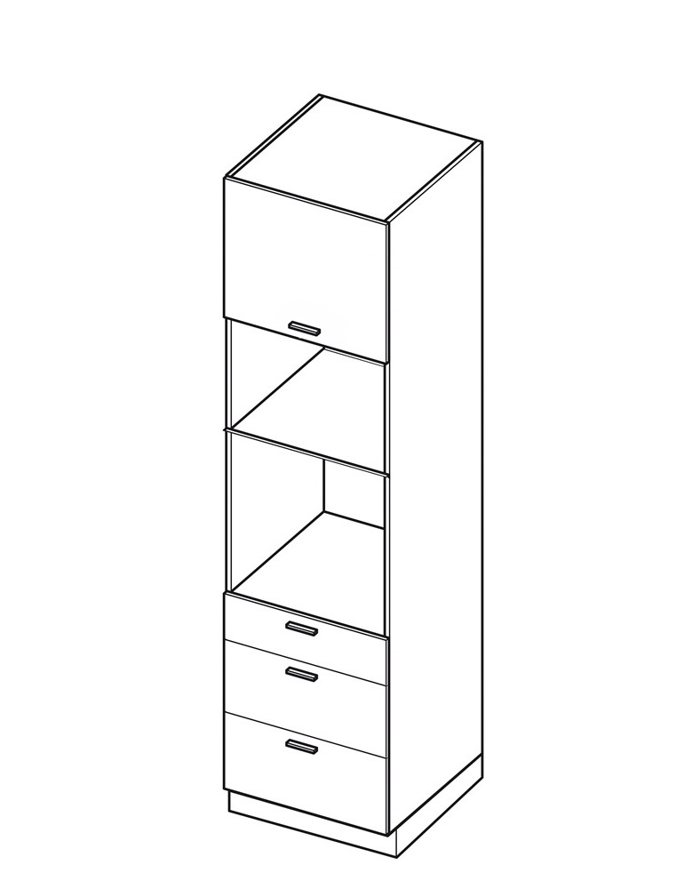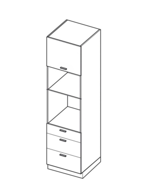 Kapil on 1 uks, 3 sahtlit ning kohad integreeritava ahju (595*595 mm) ja mikrolaineahju (max 388 mm) jaoks.