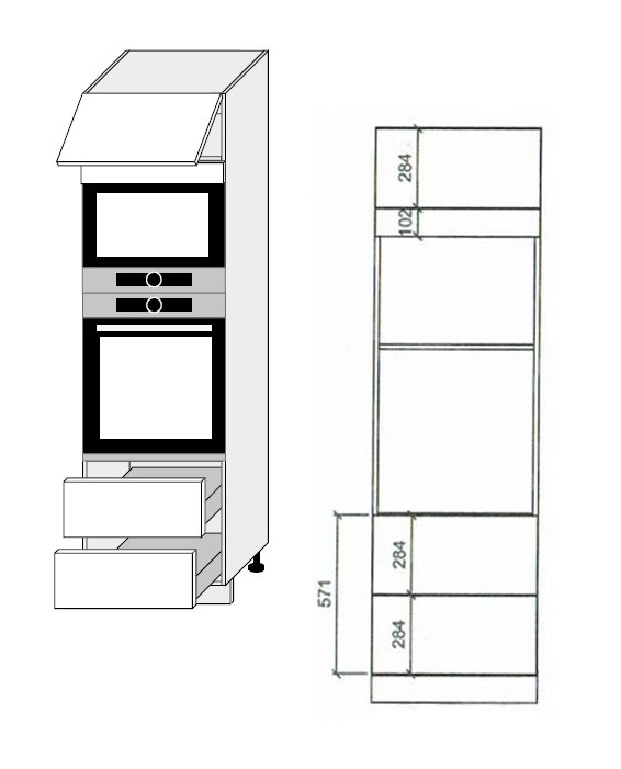 Kapil on 1 uks, 2 sahtlit ja koht integreeritava ahju ning mikrolaineahju jaoks.