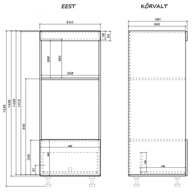Kapil on 1 uks ja koht integreeritava ahju ning mikrolaineahju jaoks.