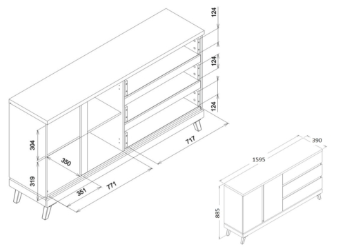 Siseriiulid: 16 mm paksusest lamineeritud puitlaastplaadist.