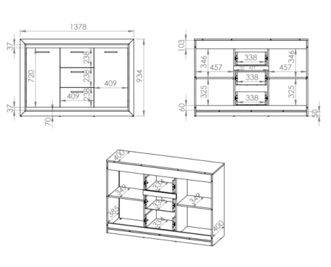 Materjal: kvaliteetne kriimustus-, niiskus- ja kuumuskindel melamiinkattega laminaat + MDF, servad – ABS.