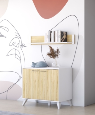 Korpus: puiduimitatsiooniga lamineeritud mööbliplaat.