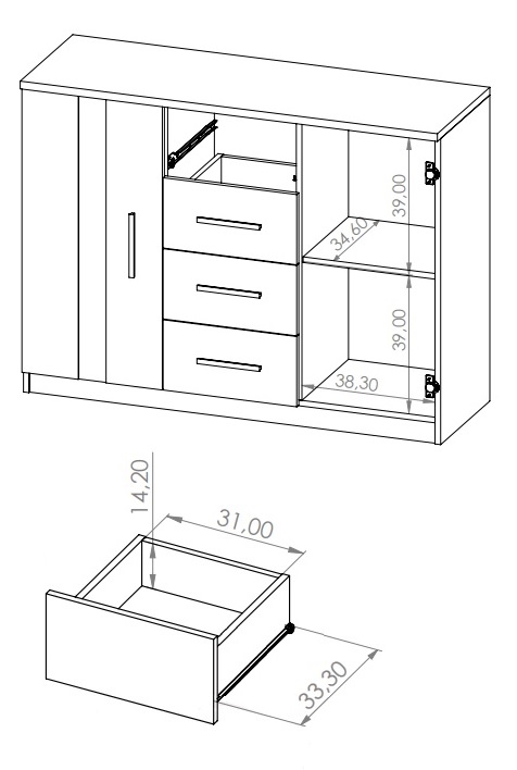 Kummut Bono K2D4SZ BO-01, valge (120/40/90)
