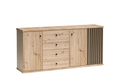 Kummut on tamm artisani värviga, üks uks on musta värvi mööbliplaadist + lisaks MDF liistud värviga – tamm artisan.