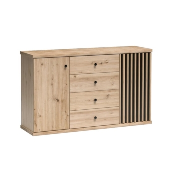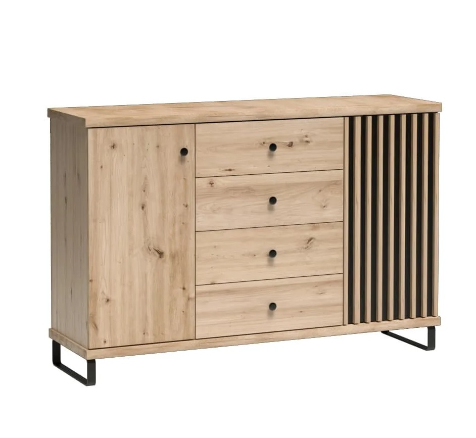 Kummut on tamm artisani värviga, üks uks on musta värvi mööbliplaadist + lisaks MDF liistud värviga – tamm artisan.