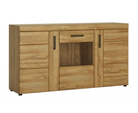 Kummutil on 3 ust. Keskmine uks on osaliselt klaasiga. Ustel on vaikselt sulguvad hinged.