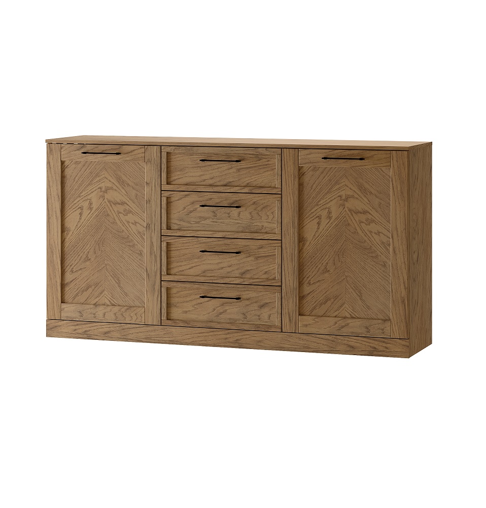 Esipinnad: täispuit + naturaalse kalasabamustrilise tammespooniga mööbliplaat.