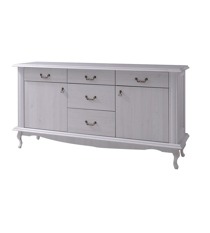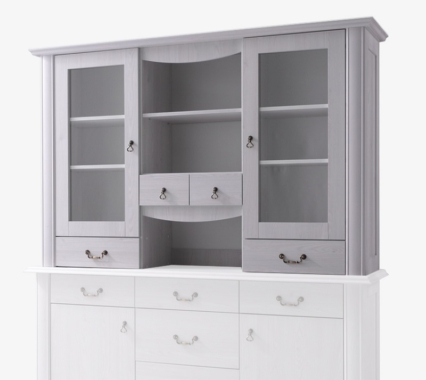 Ülakapil on 2 osaliselt klaasiga ust ja 4 sahtlit.