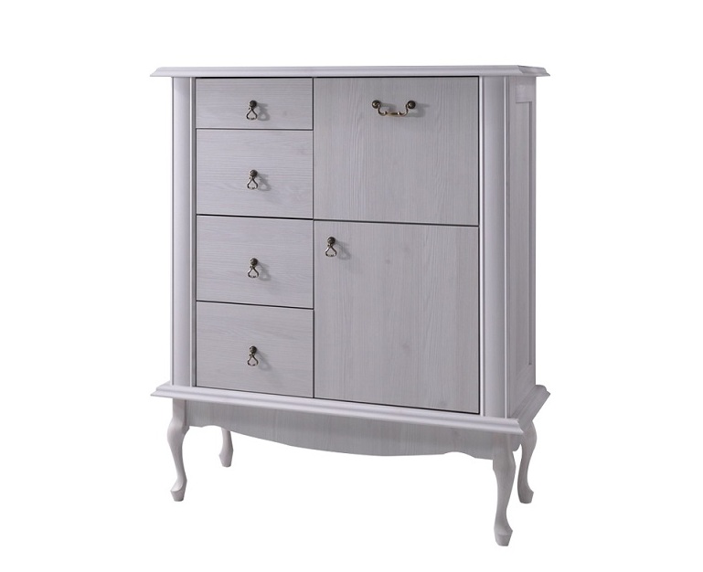 Kummutil on: 1 uks, mis avaneb ette (baarikapp), 1 tavaline uks ja 4 sahtlit.