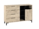 Kummutil on 4 sahtlit, 1 uks ja avatud riiuliosa.