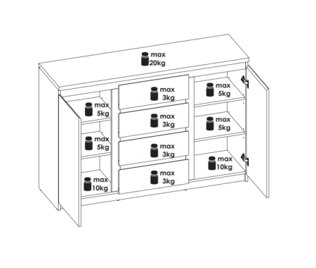 Kummut Madison MD10 (valge lux/tamm) 120/40/89