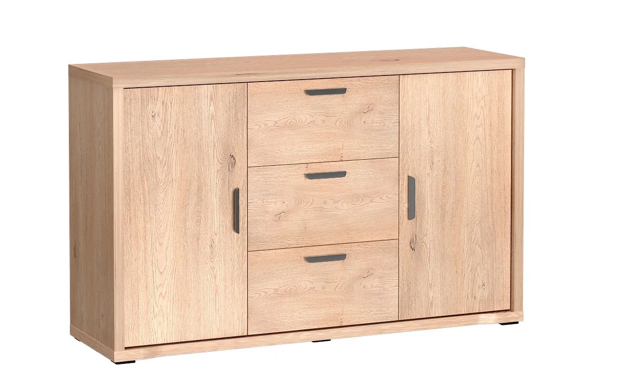Kummutil on 3 sahtlit ja 2 riiulitega kappi.