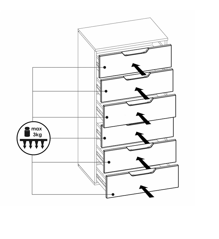 Kummutil on 6 sahtlit.