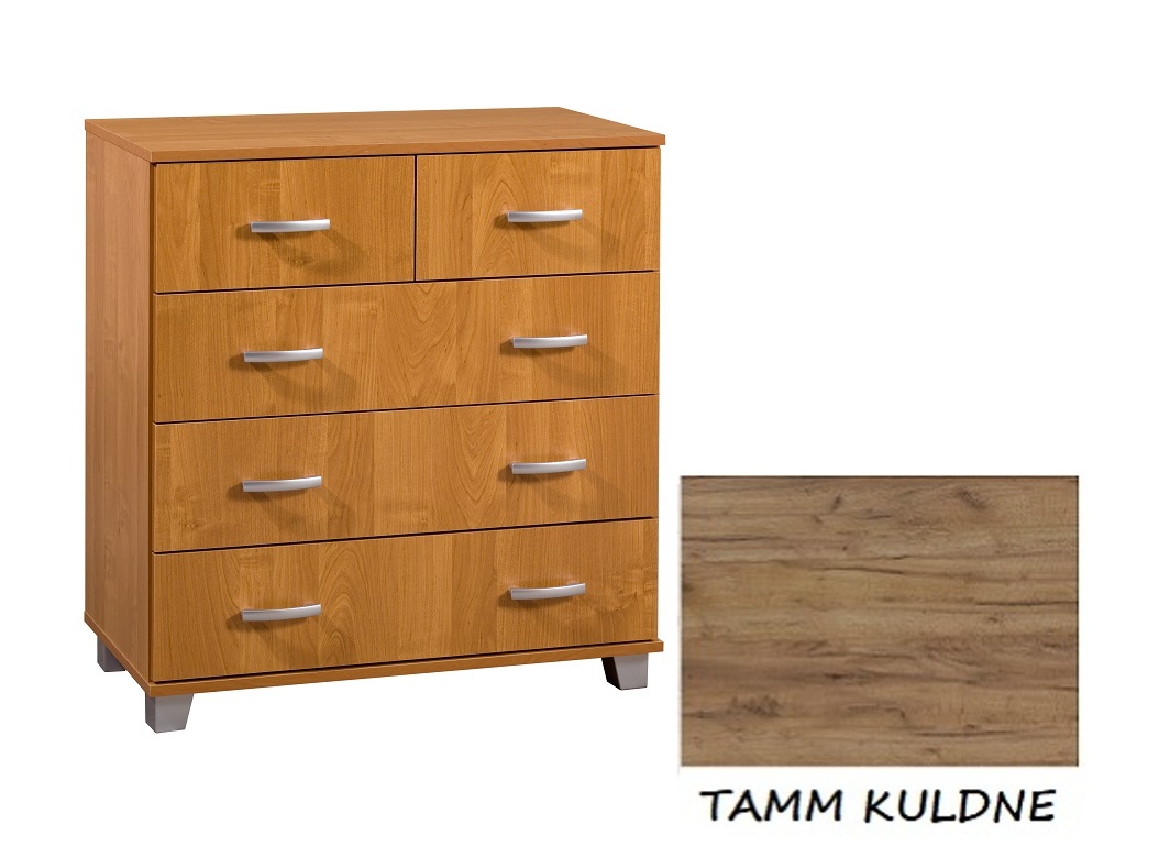 Kummut on pildil lepa värviga. Laos kohe olemas värv (tamm kuldne) on lisatud pisipildina juurde.