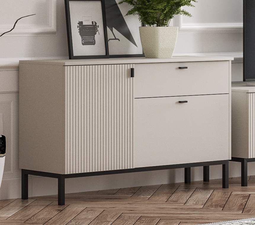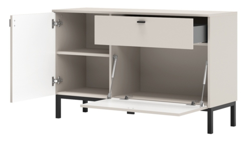 Kummutil on 1 kõrvale avanev uks, 1 sahtel ja 1 ette avanev uks.