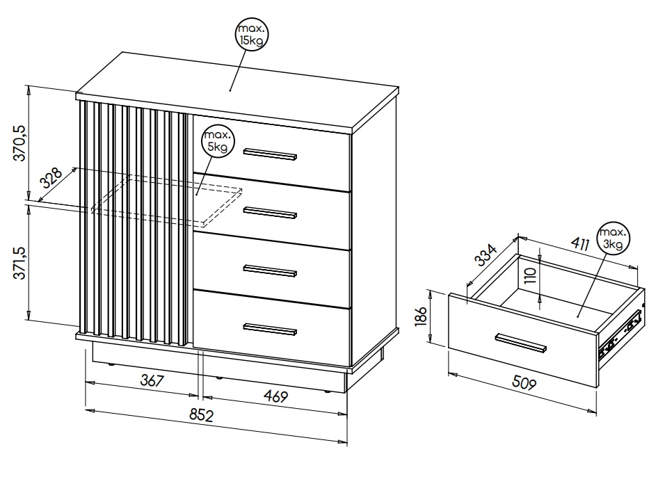 Espinnad: lamineeritud puitlaastplaat + MDF lamell paneelid.