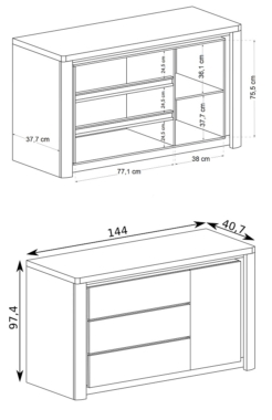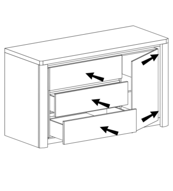 Kummutil on 1 uks ja 4 sahtlit.