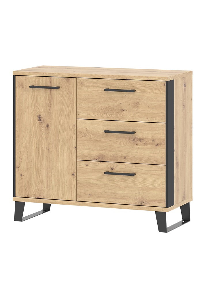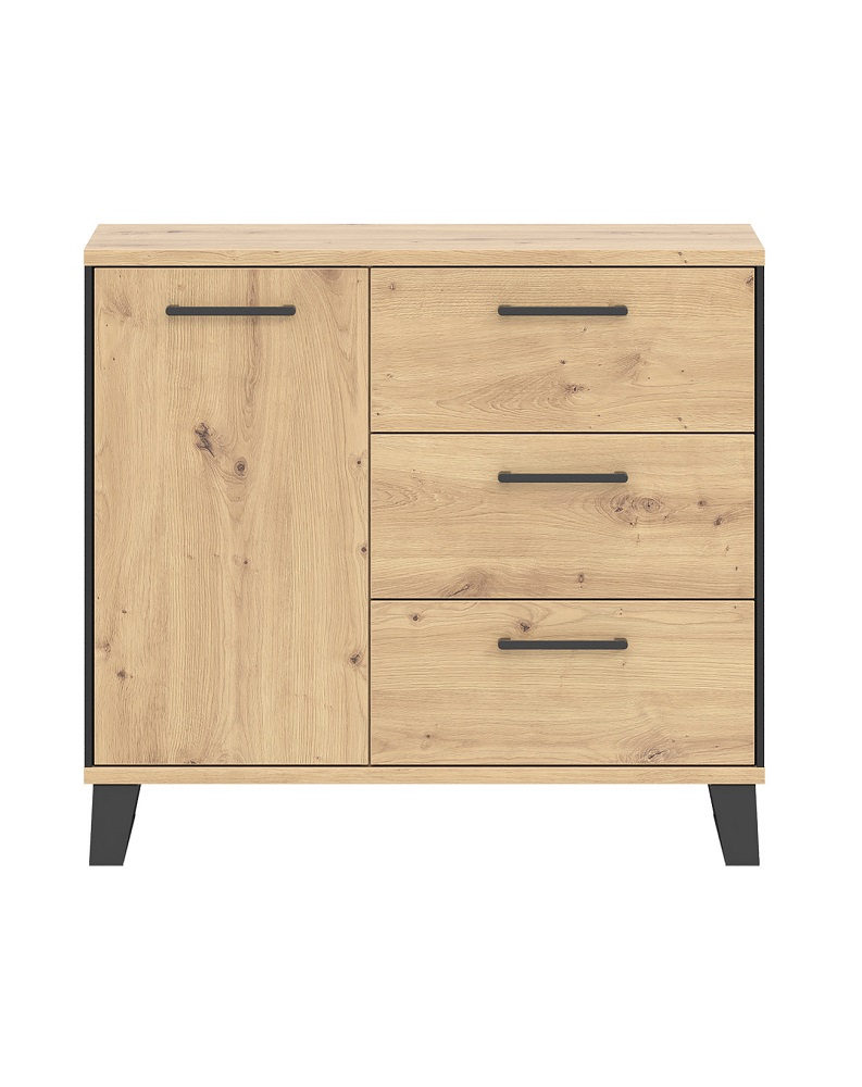 Kummutil on 1 uks ja 3 sahtlit.
