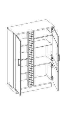 1 uks on osaliselt klaasiga. Klaasiga ukse taga on 1 klaasist riiul.