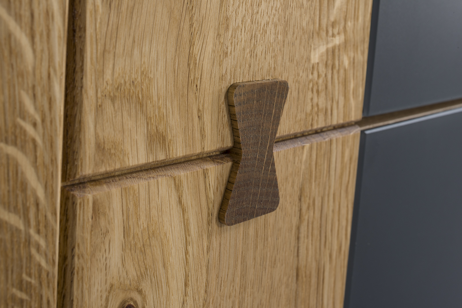 Esipaneelid on massiivsest tammepuidust, mis toob esile puidu loomuliku struktuuri ja oksalise mustri.