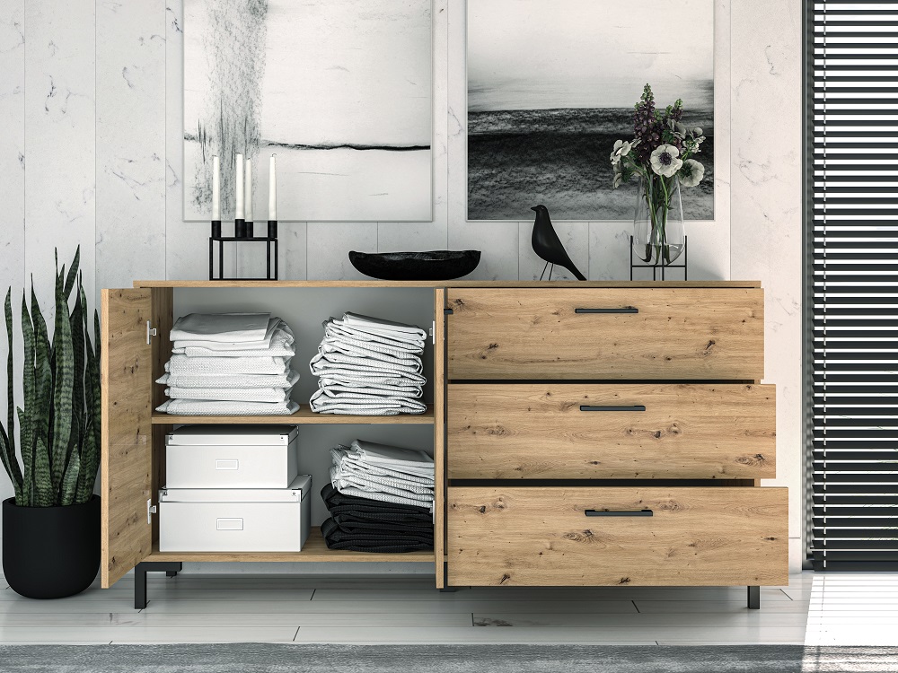 Kummutil on 2 ust ja 3 sahtlit.