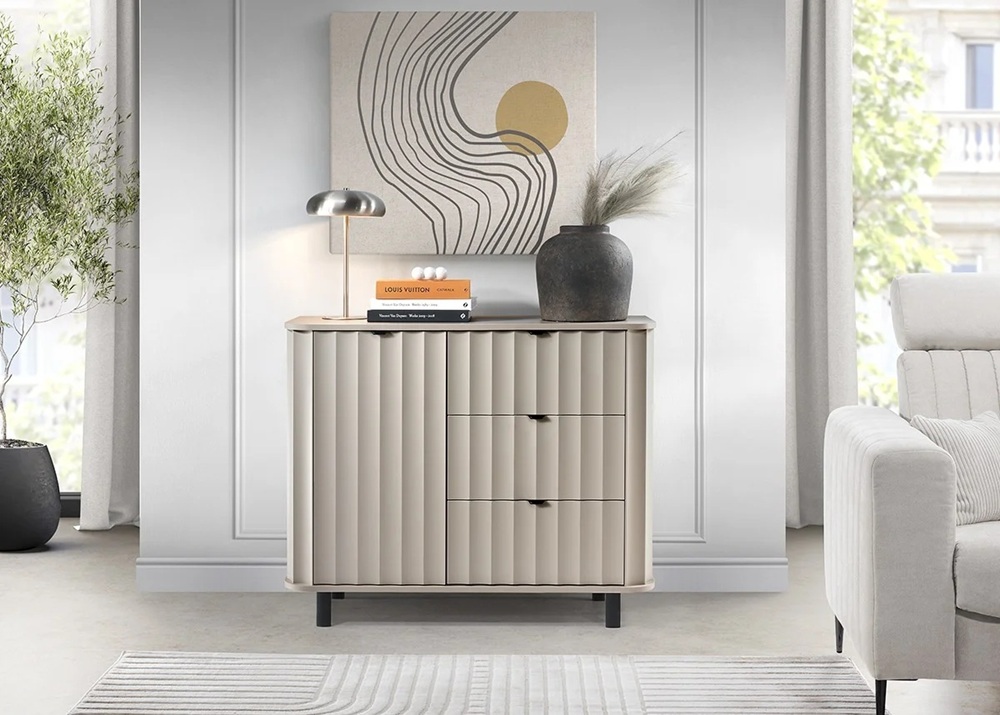 Kummutil on 1 uks ja 3 sahtlit.