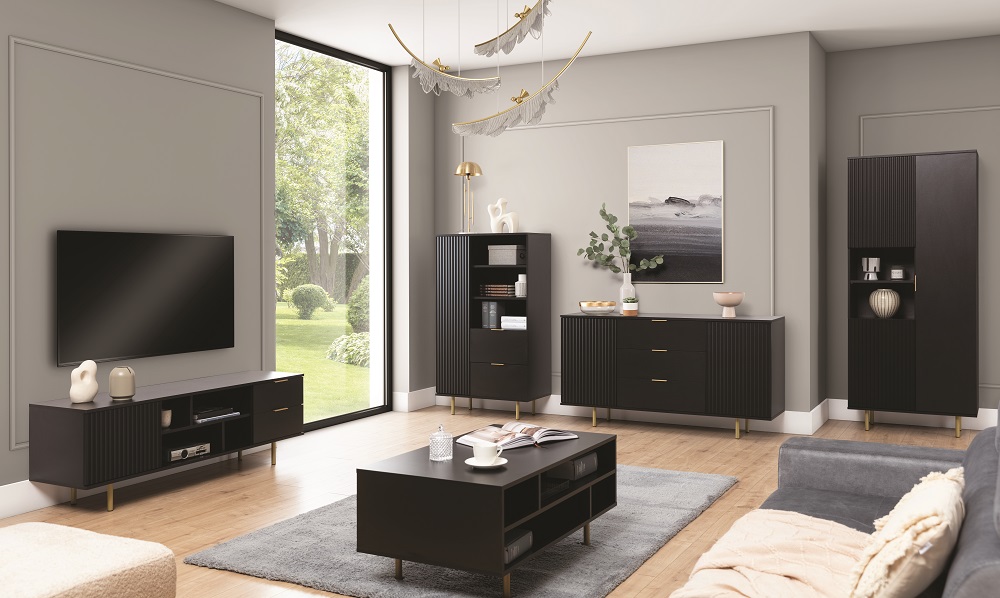Laineline esipind: freesitud MDF plaat, kaetud fooliumiga – ilma käepidemeta/avaneb peale vajutades.