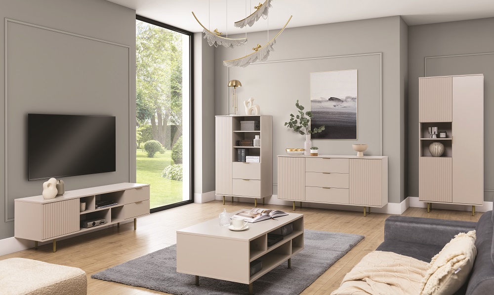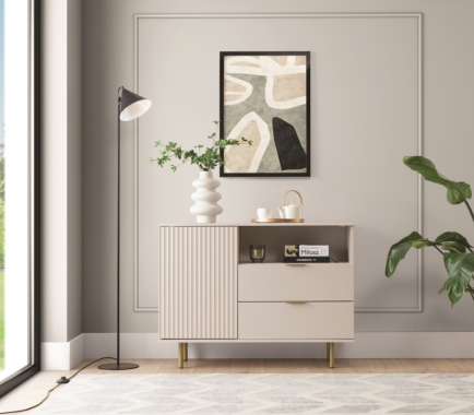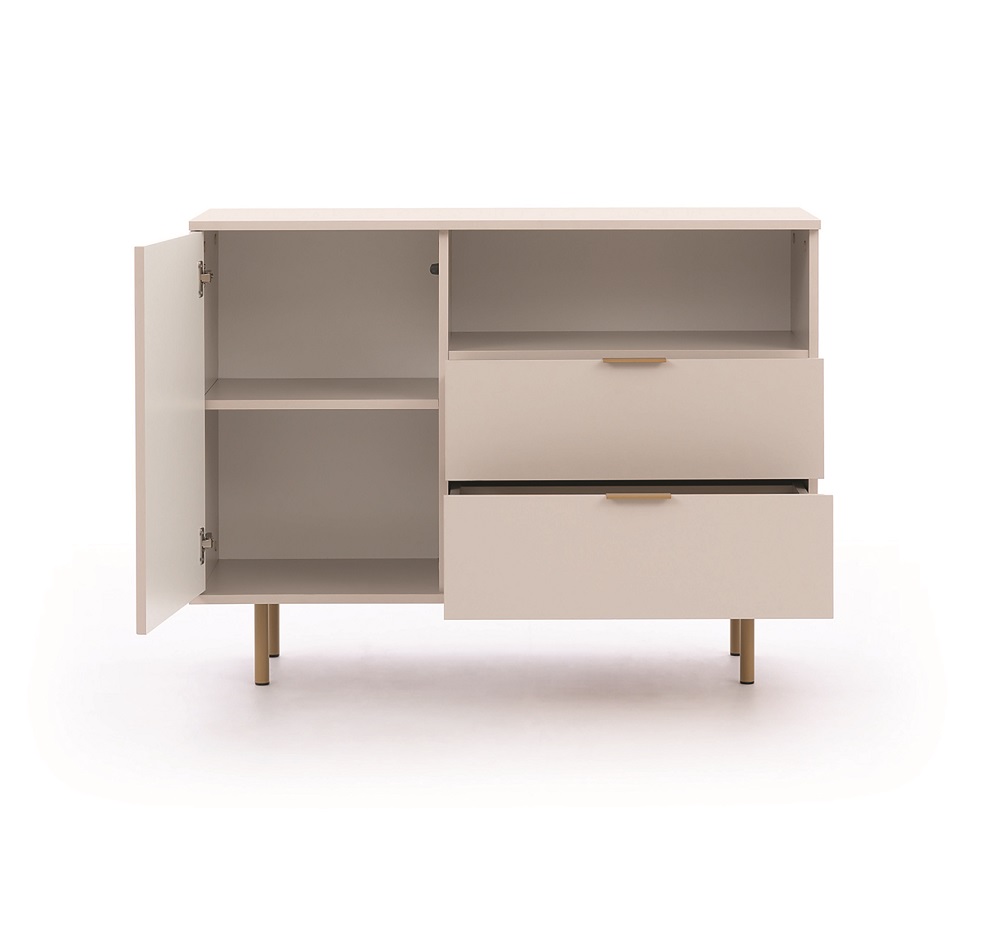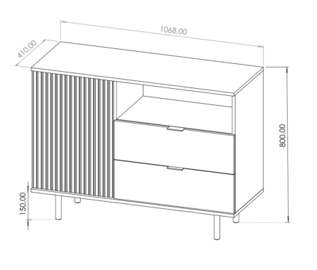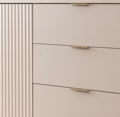 Laineline esipind: freesitud MDF plaat, kaetud fooliumiga – ilma käepidemeta/avaneb peale vajutades.