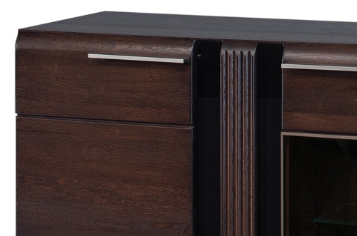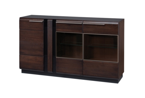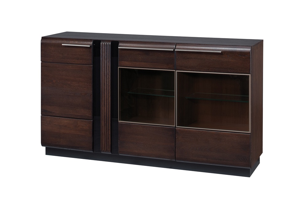 Kummutil on 3 ust. Keskmine ja parempoolne uks on osaliselt klaasiga.