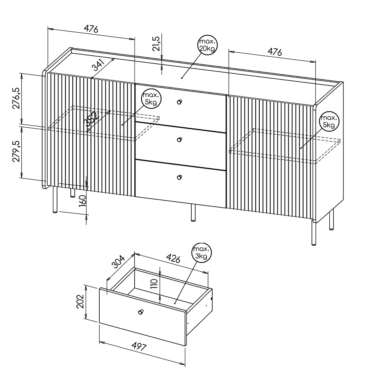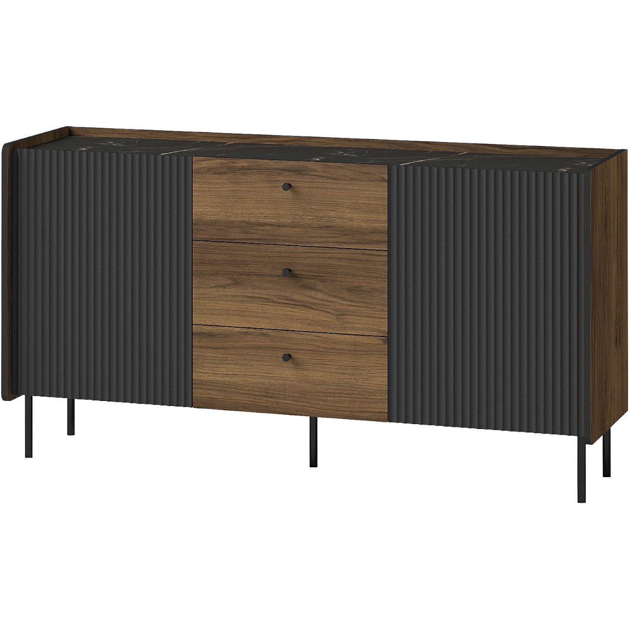 Esipinnad: lamineeritud puitlaastplaat (pähkel warnia) + soonega MDF plaat (must).