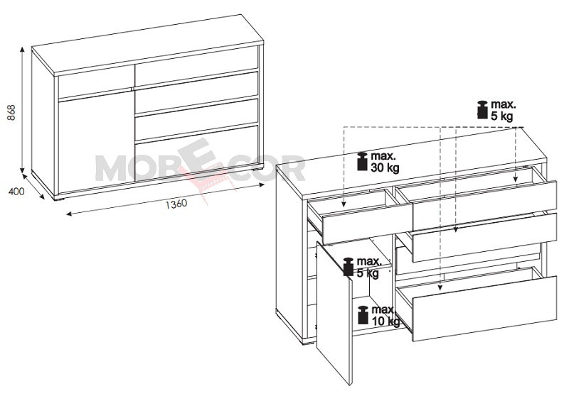 Materjal: kvaliteetne kriimustuskindel melamiinkattega laminaat.