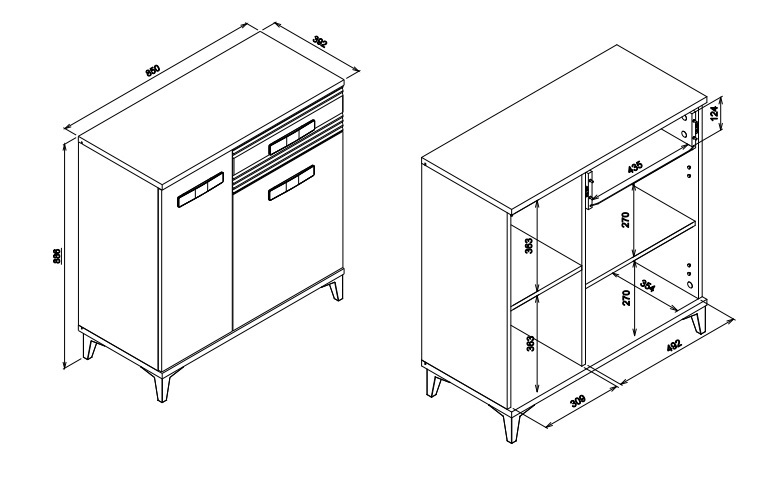 Esipinnad: lamineeritud puitlaastplaadist, paksusega 16 mm. / MDF 18 mm, kaetud PVC fooliumiga.