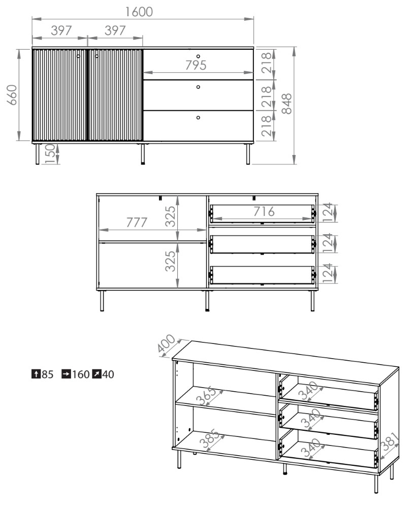 Esipinnad: lamineeritud puitlaastplaat + MDF.