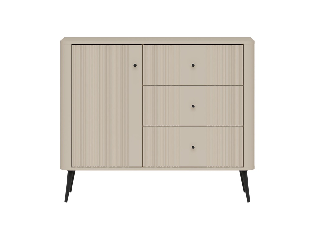 Kummutil on 1 uks ja 3 sahtlit.