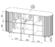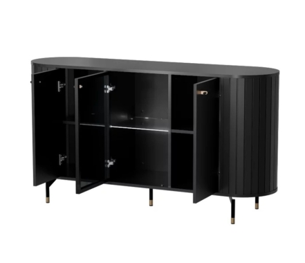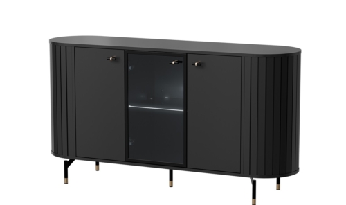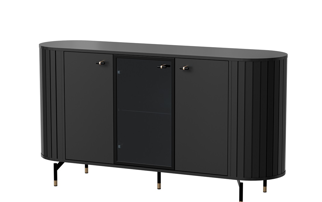 Vitriinkapil on kõrged metallist jalad (mustad, kuldsete detailidega) ja metallist minimalistlikud käepidemed (mustad, kuldsete detailidega).