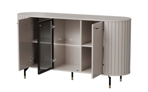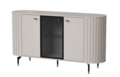 Vitriinkapil on kõrged metallist jalad (mustad, kuldsete detailidega) ja metallist minimalistlikud käepidemed (mustad, kuldsete detailidega).