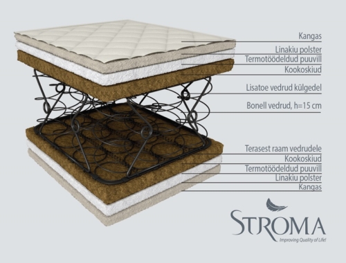 Täidismaterjalina on kasutatud õhku läbilaskvaid puuvilla kihte ja kookoskiu kihte.