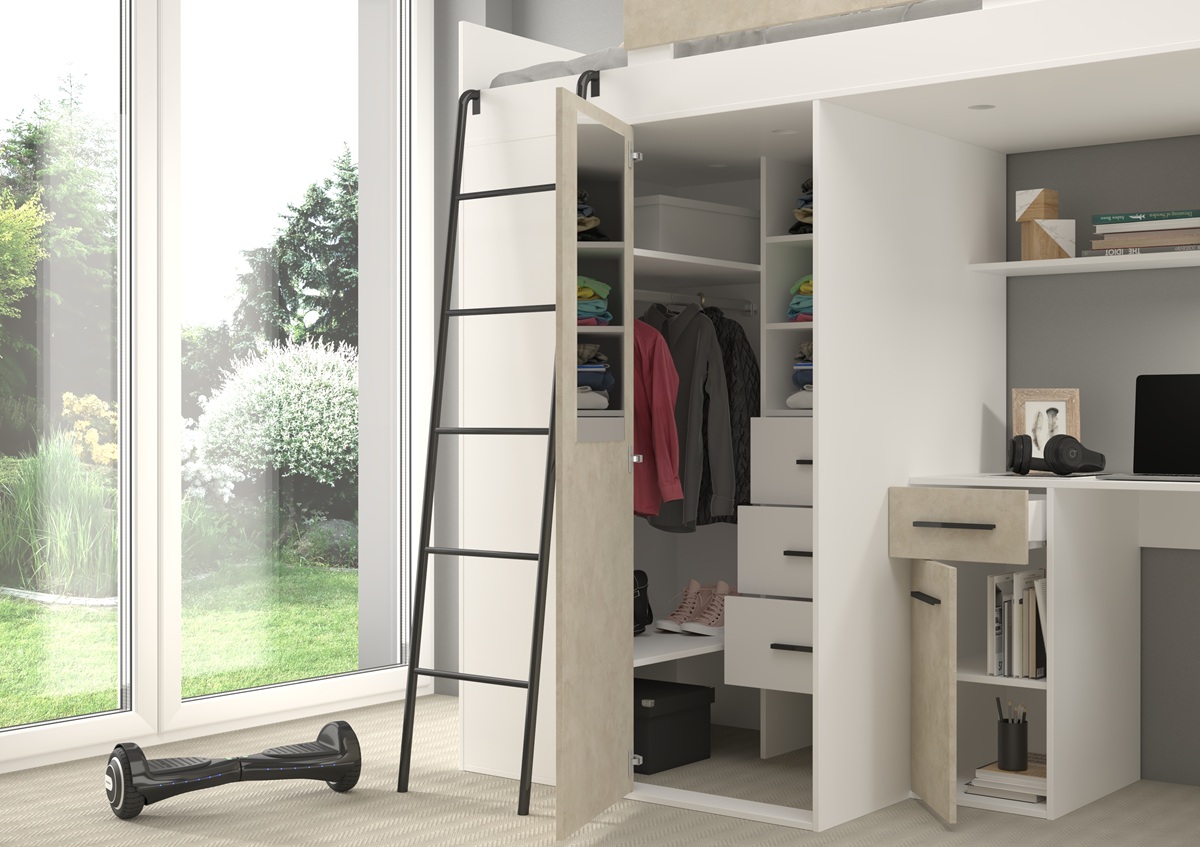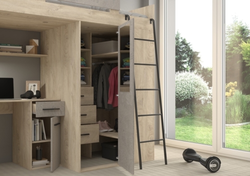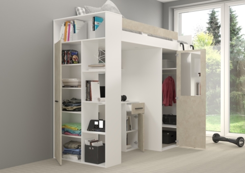 Komplekti kuuluvad: voodi, kirjutuslaud, kapid riiulite ja sahtlitega.