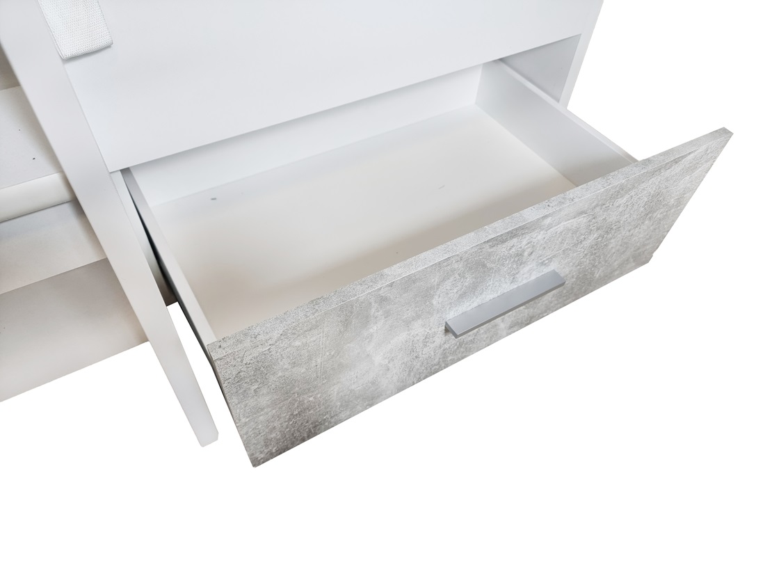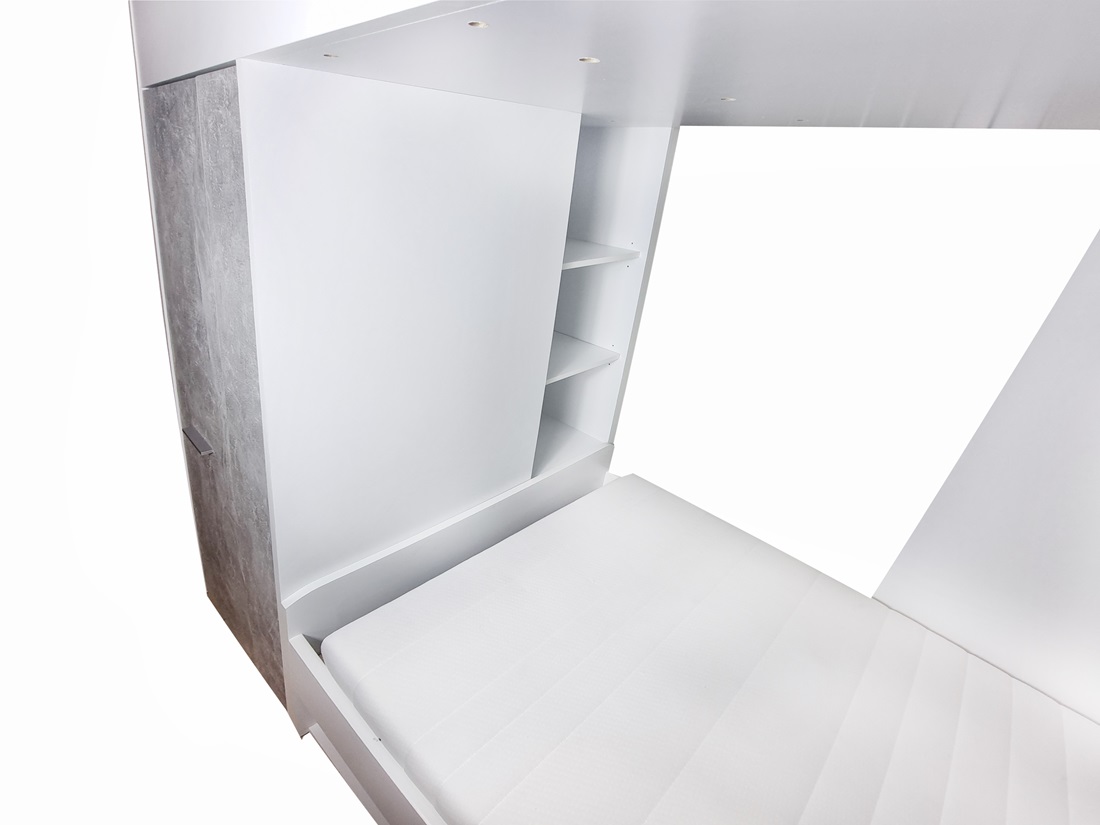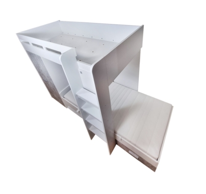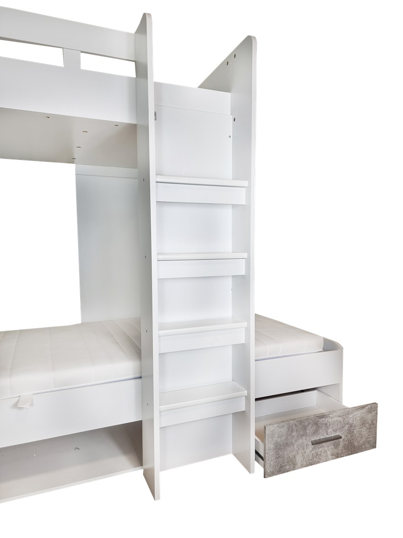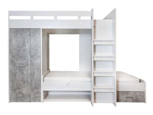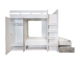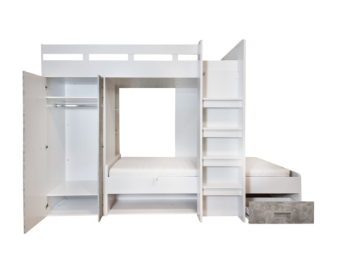 Narivoodi komplekti kuulub: 2 voodit, voodisahtel, riidekapp, riiul ja redel.