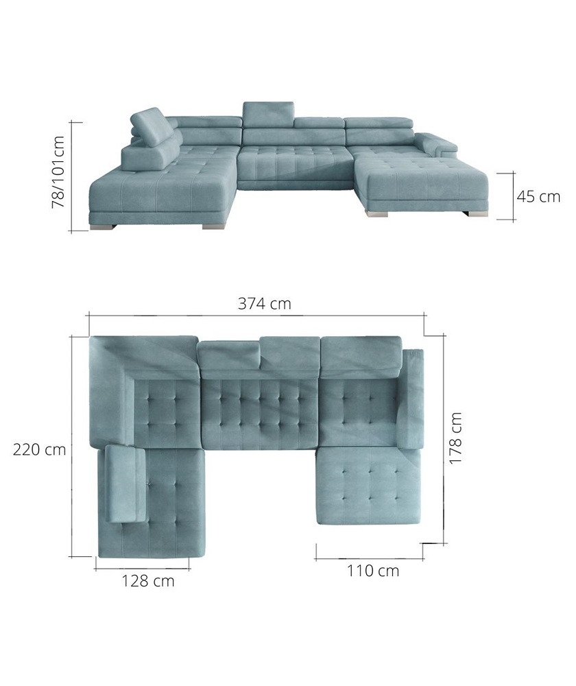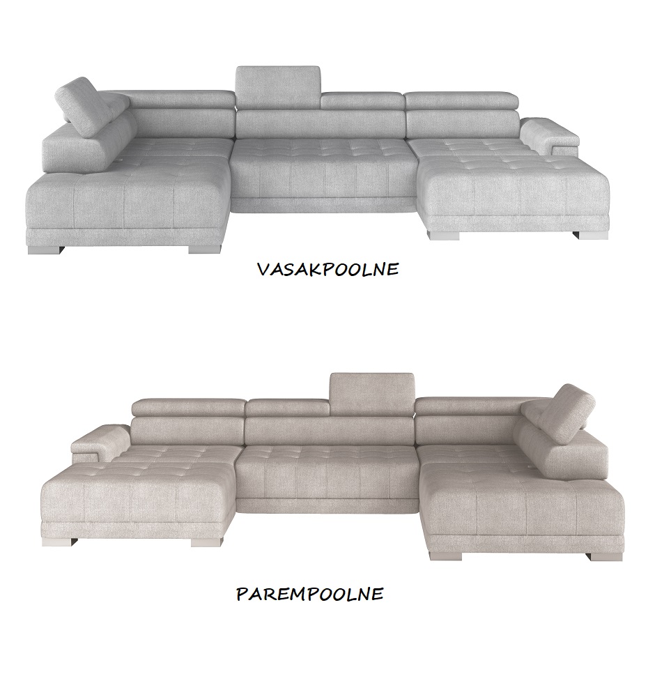 Nurgadiivani keskmise istme sügavus on elektriliselt reguleeritav.